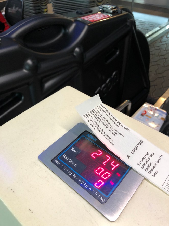 Я покупал лимит по весу на спортивное оборудование в 25 кг, думал что этого хватит, увы, вес вышел в 28.2 кг, и за каждый дополнительный килограмм нужно платить 50 ринггит (12.5 USD), итого у меня попросили 150 ринггит 😯 Если бы я покупал лимит на 30 кг заранее, это вышло бы гораздо дешевле! В итоге я решил кое-что переложить в ручную кладь, взвесил кейс заново, получилось 27.4, решил так и оставить, заплатив 100 неожиданных ринггит.