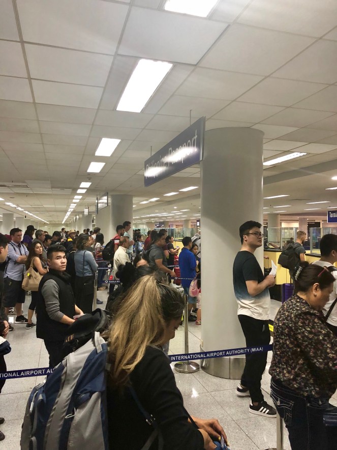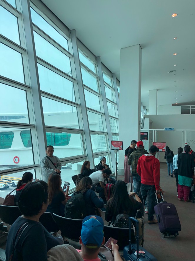 Для того чтобы перечекинить багаж (велик), надо было пройти иммиграцию, найти стойку с крупногабаритным грузом и пойти на регистрацию на следующий рейс. Такого окошка я не нашёл, пошёл к ленте AirAsia, чтобы спросить где именно искать. Мне ответили что должны были вынести сюда, я пришёл правильно. Но в итоге его не было. Они начали связываться с работниками, звонить по телефону и рации, попросили показать фото, они переслали кому-то по Viber и WhatsApp. Пришлось ждать ещё, затем сотрудники AirAsia отправили запрос в Куала-Лумпур, чтобы узнать, вылетел ли он этим же рейсом. Они опять с кем-то созванивались, время шло. Я уже увидел что для меня начинают заполнять декларацию о потере, а потом попросили оставить свои данные на Филиппинах, куда именно я еду, обещали сегодня же или завтра отправить мои вещи прямо в отель и посоветовали идти на следующий рейс, чтобы успеть на него. Расстроенный текущем положением дел, мне ничего не осталось как лететь дальше и ждать информацию о моих вещах. Взял у них документ, который описывает потерю и в последний момент мне сообщают что мне дальше надо вылетать из четвёртого терминала, в данный момент я был в третьем.