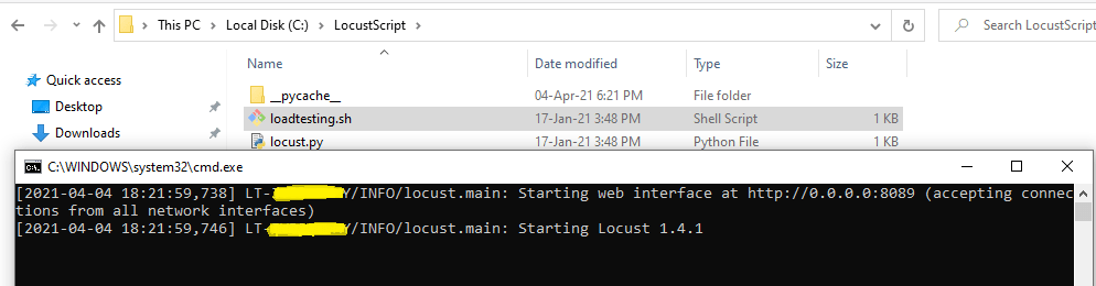 5. Run script: you can already execute the loadttesting.sh and see the next console window: