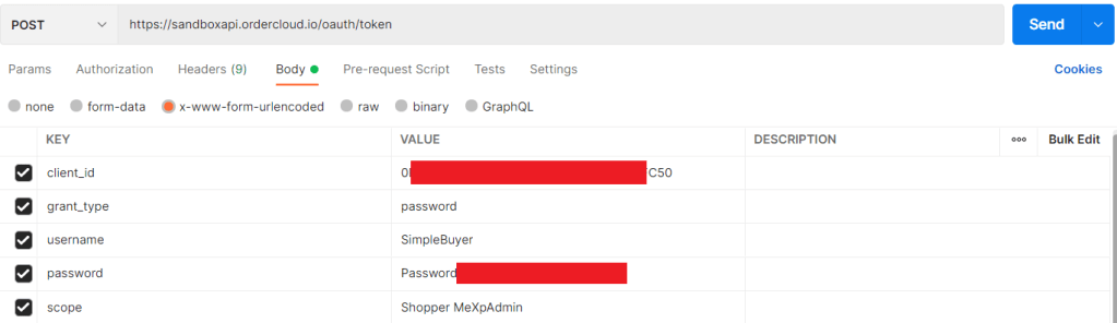 The user SimpleBuyer has been registered in Order Cloud console previously.
