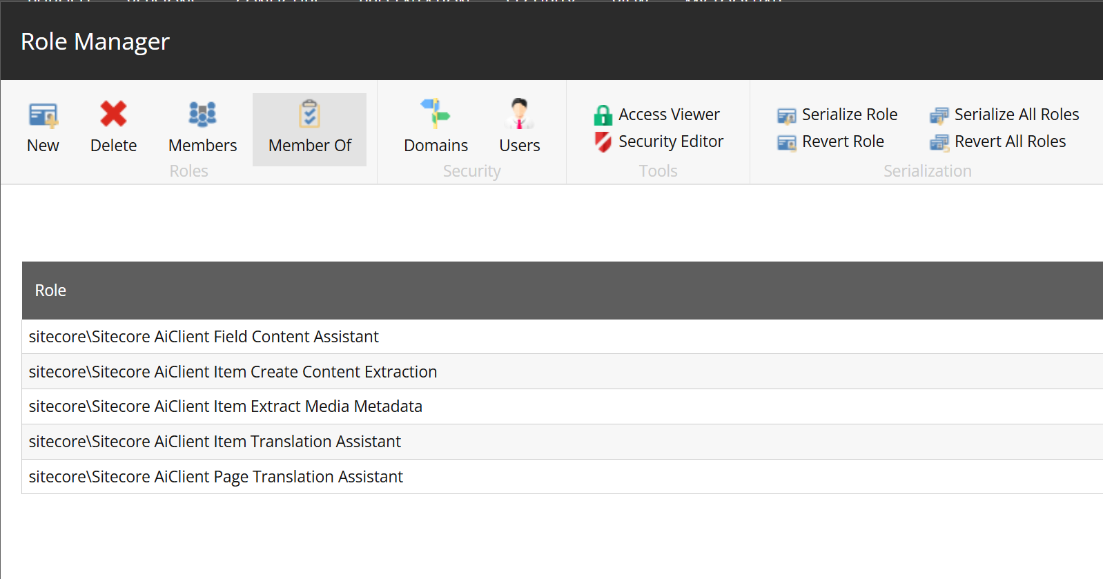 There have been added five new roles in Sitecore through the Role Manager. Each of these roles corresponds to a specific feature of Stream AI. The goal is to provide more granular access control and ensure that users only have permissions relevant to their responsibilities.